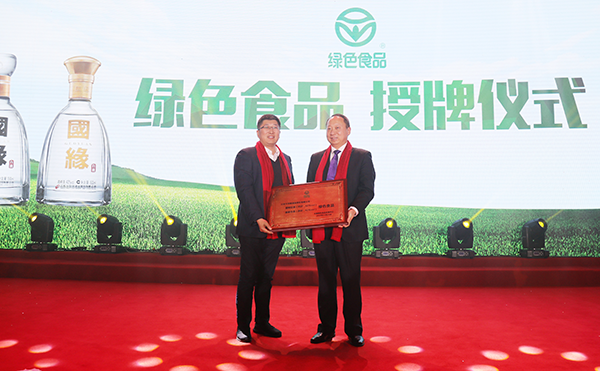 ● 2019年1月9日,江苏省绿色食品办公室主任徐继东(左)向yl9193永利酒业副董事长、副总经理吴建峰(右)颁发“绿色食品”牌匾。
