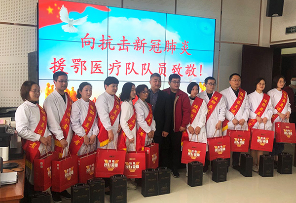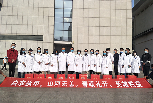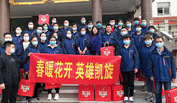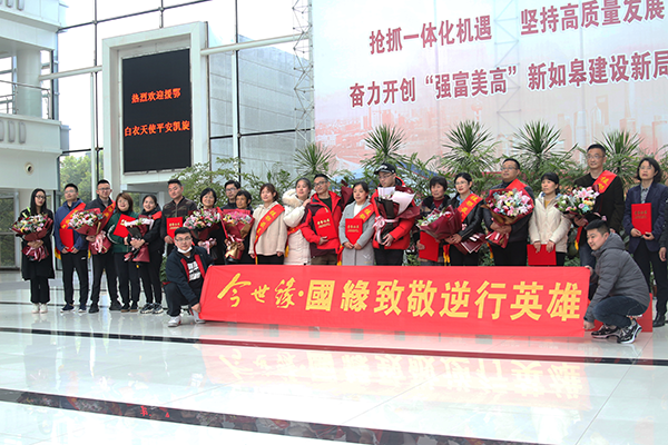 勇士逆行时,朔风凛冽寒未尽;英雄归来日,春华正浓花满枝。4月11日,在如皋市委、市政府举行的迎接11名援鄂医疗队员回如返岗欢迎仪式上,yl9193永利酒业苏中大区如皋办事处为英雄们送上了特制的国缘V9,表达对英雄的敬意和祝福。