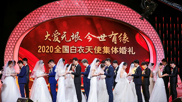 江苏广播电视总台主持人陈怡、曹洋主持2020全国白衣天使集体婚礼。