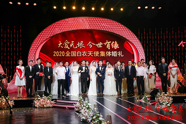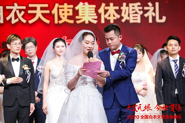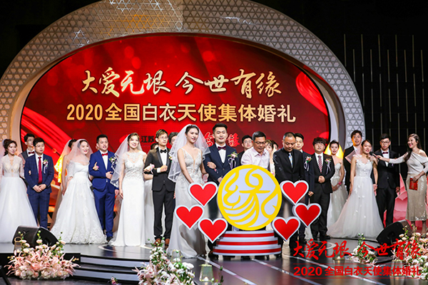 “大爱无垠,今世有缘”2020全国白衣天使集体婚礼主办方领导嘉宾祝福新人。