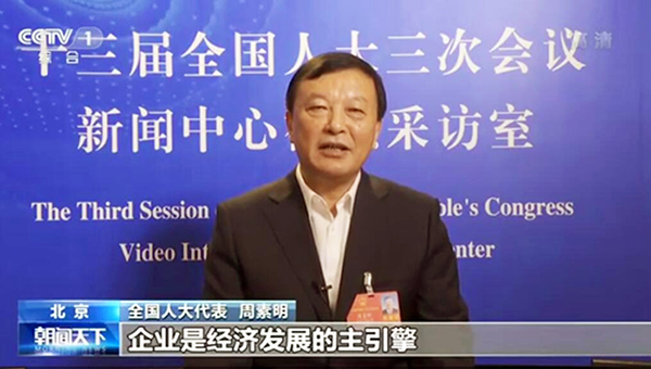 5月26日,央视《朝闻天下》播出了全国人大代表,yl9193永利酒业董事长周素明在“十三届全国人大三次会议新闻中心视频采访室”接受记者采访的画面以及同期声。