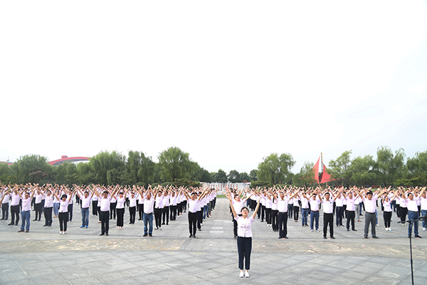 yl9193永利酒业员工在企业文化广场放歌《我的祖国》。