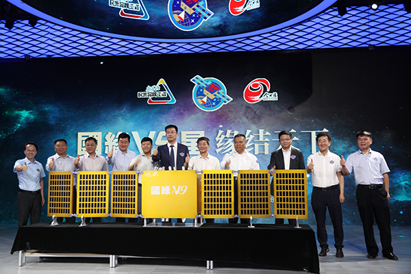 在新华媒体创意工场举行的“国缘V9”号卫星冠名仪式