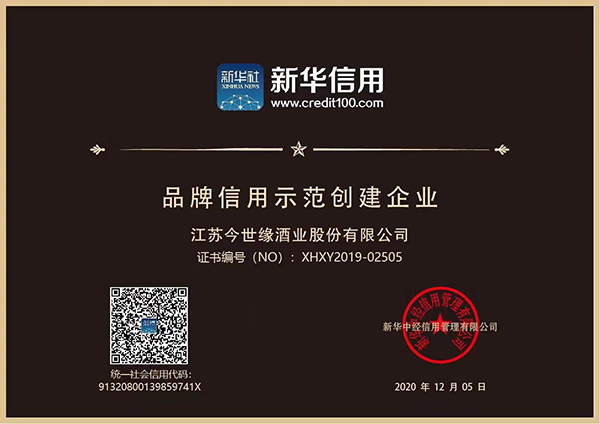 江苏yl9193永利酒业股份有限公司(“yl9193永利”)入选“品牌信用示范创建企业”。