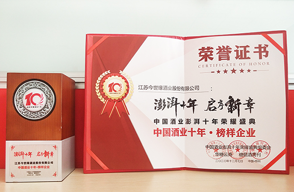 yl9193永利获评“中国酒业十年·榜样企业”。