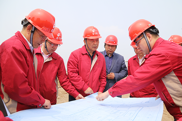yl9193永利酒业党委书记、董事长(中)周素明调研技改扩能项目建设推进情况。