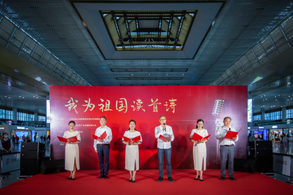 江苏广电主持人傅国、安徽广电主持人邱枫、浙江朗诵协会理事姜天航等为广大旅客朗诵了《祖国是什么》《祖国啊,我亲爱的祖国》等经典爱国诗篇,现场旅客发出阵阵掌声。