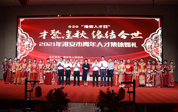 参加集体婚礼的新人中,既有服务淮安经济社会发展的高层次青年人才和“名校优生”代表,也有奋战在抗疫一线的先进工作者和科技、教育等领域的优秀青年代表,他们因缘相识相知,相爱相守。